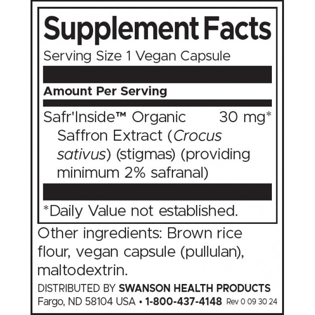 • Всяка капсула съдържа 30 мг Екстракт от шафран Safr'Inside™