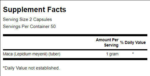 Всяка капсула съдържа 500 мг от корен на мака в съотношение 04:01 екстракт.