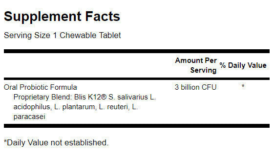 Това е първият пробиотик на Суонсън, специално създаден за здравета на устната кухина. Тя се отличава със специален щам на S. salivarius, наречен BLIS K12, разработен от BLIS Technologies от Нова Зеландия. BLIS K12 е полезна бактерия, която живее само в устната кухина и е доказано, че подпомага доброто здраве на устната кухина, поддържа функцията на имунната система и предпазва от разпространението на бактерии, които могат да причинят лош дъх. BLIS K12 е участвал в няколко клинични проучвания и е включен в повече от 30 публикувани научни статии. Учените смятат, че когато BLIS K12 се приема редовно, тя може да помогне за поддържането на здравето на горните дихателни пътища и за здравето на гърлото и самата устна кухина