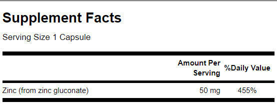 Ценна хранителна подкрепа за здравето на имунната система, простатата, очите и много други . Цинкът е основен минерал и решаващ елемент от основните антиоксидантни ензими на организма. Всяка капсула с висока активност доставя 50 мг цинков глюконат.