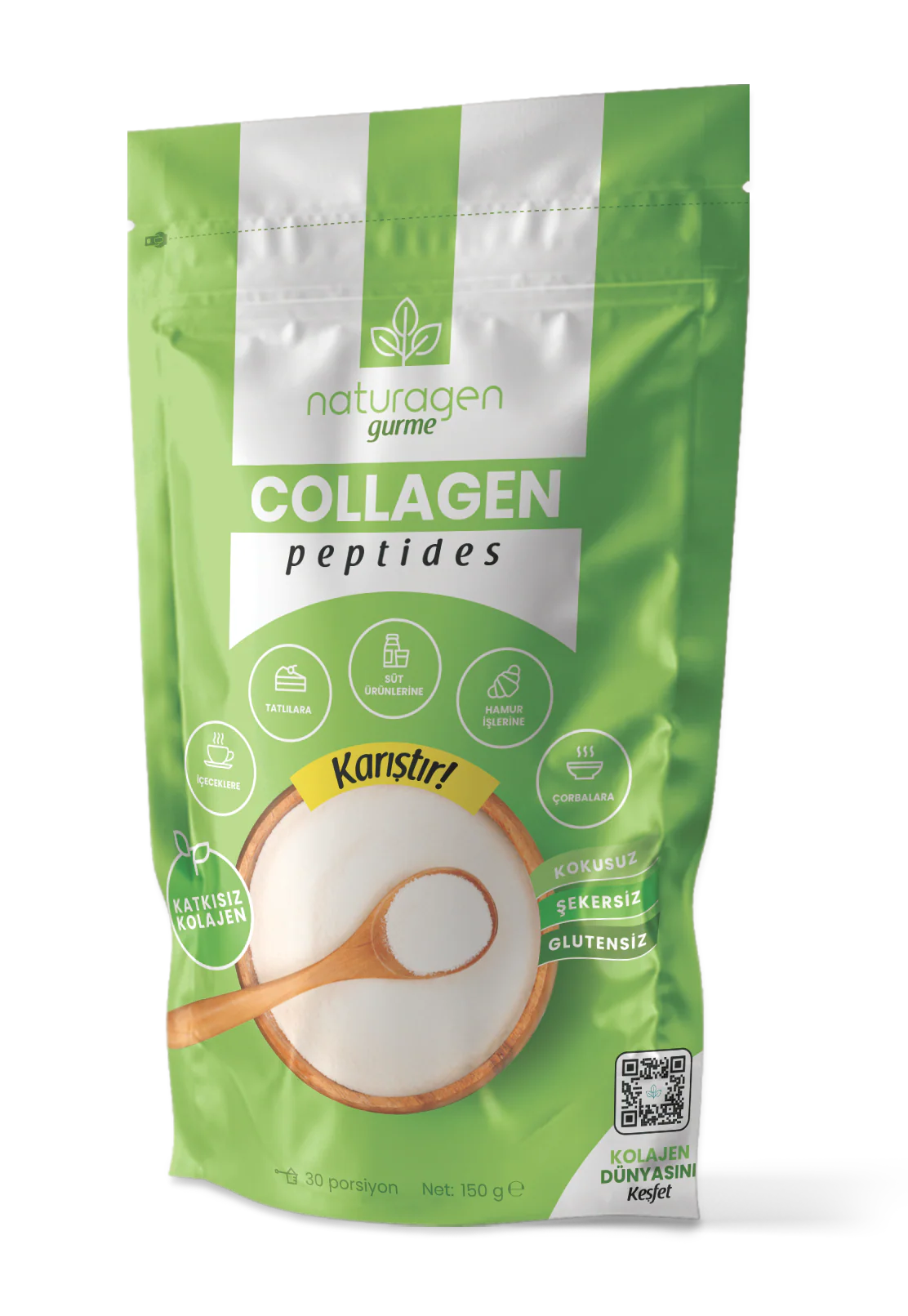КОЛАГЕН ПЕПТИДИ ГУРМЕ ПУДРА, плик с цип, 150 гр., без вкус/аромат