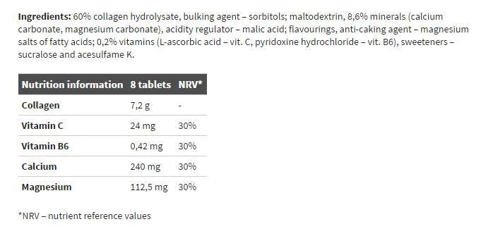 Хранителна добавка с колаген хидролизат - цитрусови ароматизирани таблетки за дъвчене - с подсладител.