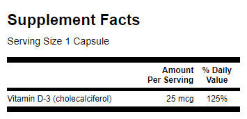 Всяка капсула съдържа 25 микрограма Витамин Д3 като холекалциферол