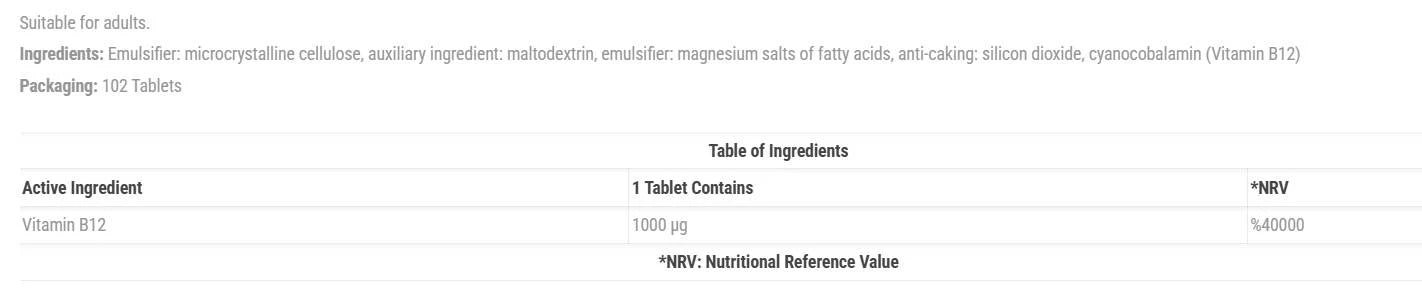 Vitamin B12 1000 mcg - 102 Таблетки