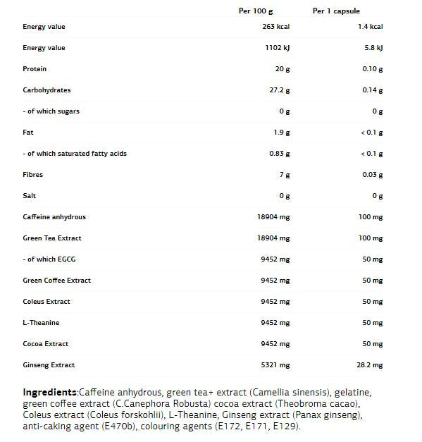 • Екстрактите от зеления чай и зелено кафе осигуряват стимулиране на метаболизма и антиоксидантна защита.