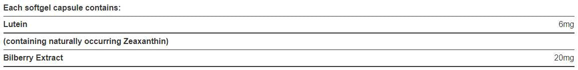 Чувствителните тъкани на очите са особено уязвими по отношение на опустошителното действие на свободните радикали. Ето защо антиоксидантите играят такава важна роля в поддържане здравето на очите. Стандартизираният лутеин и боровинка на Holland & Barrett съчетава два от най-ефективните специфични антиоксиданти в природата, за да поддържат доброто зрение. Всяка софтгел капсула осигурява 20 мг стандартизиран екстракт от боровинка, 6 мг лутеин.