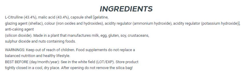 Цитрулин малатът играе ключова роля в производството на азотен оксид, което разширява кръвоносните съдове и подобрява кръвоснабдяването към мускулите. Това води до по-плътна помпа, по-бързо възстановяване и по-добри резултати по време на силови и кардио натоварвания. Формулата съдържа L-цитрулин (43,4%) и ябълчена киселина (43,4%), които подпомагат енергийния обмен и общото представяне. Чистата комбинация осигурява висока биодостъпност и лесно дозиране за редовна употреба в спортния режим.