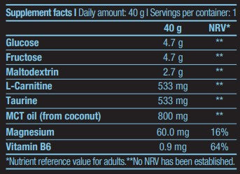 Vitamin B6 and magnesium have been scientifically proven to play an important role in maintaining normal energy metabolism, which is essential for optimal performance during exercise. MCT (medium-chain triglyceride) oil included in the composition is absorbed significantly faster compared to long-chain fatty acids, making it an ideal source of energy.