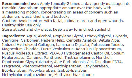 • Нанасяйте върху тялото, фокусирайки се върху корема, талията, бедрата и седалищните части.