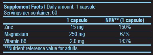ZMB / 60 caps е натурална хранителна добавка, съчетаваща цинк, магнезий и витамин В6 за подпомагане на възстановяването, силата и общото спортно представяне.