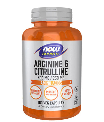 NOW Foods Аргинин 500 мг и Цитрулін 250 мг – 120 капсули е комбинирана формула от две аминокиселини за активен начин на живот. Продуктът е произведен от NOW Foods, марка с дългогодишен опит в хранителните добавки и репутация за яснота и качество. Формулата съчетава две познати компоненти в удобна капсулна форма за ежедневна употреба.