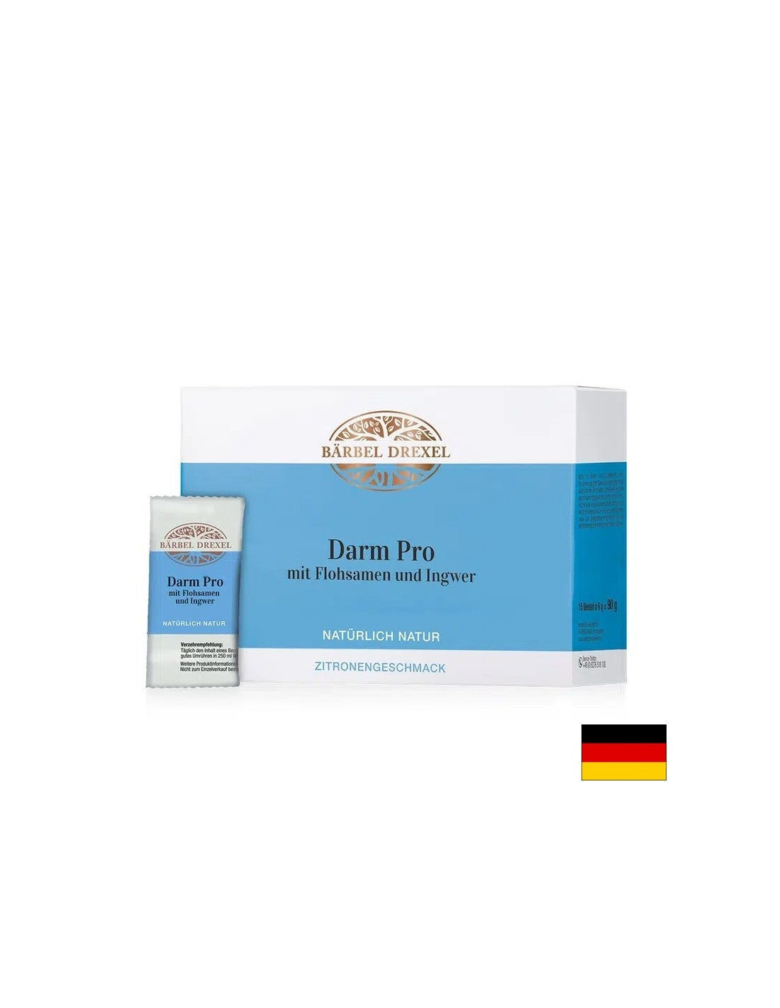 Darm Pro combines fiber from plantain, ginger, probiotics, enzymes and herbal extracts for comprehensive digestive support and natural bowel cleansing. With a pleasant lemon flavor and a convenient form for intake