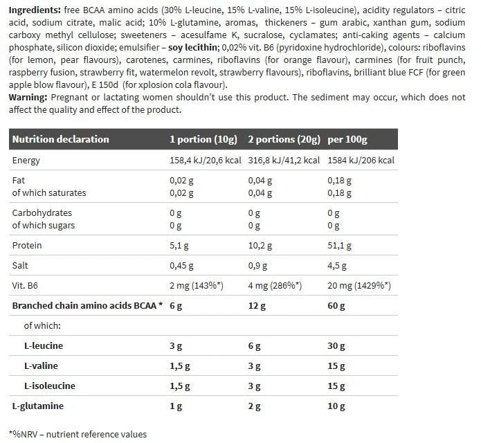 BCAA Xplode is the perfect product for you! To enhance the anti-catabolic effect of the product, its composition is enriched with a good amount of l-glutamine, which is the second most important ingredient for the muscle after BCAA.
