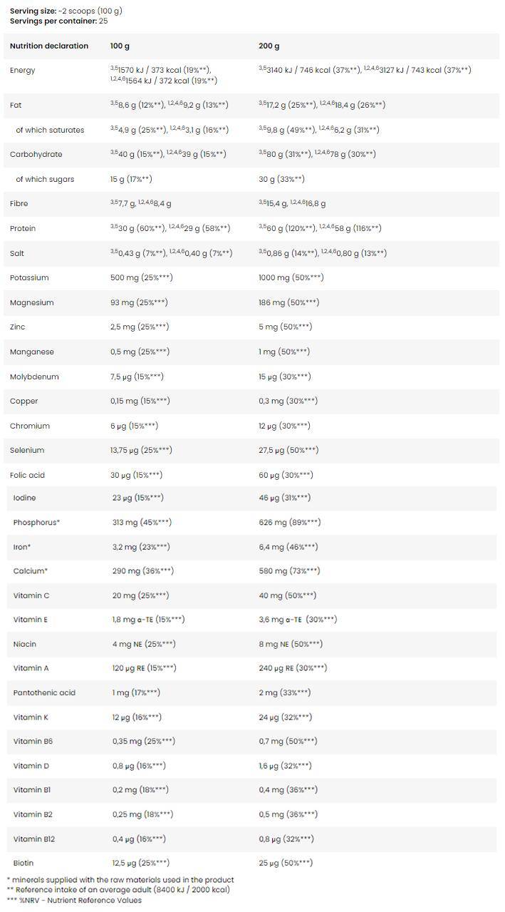 → Muscle recovery: The product is a rich source of proteins, which are an essential element for muscle recovery and growth after training.
