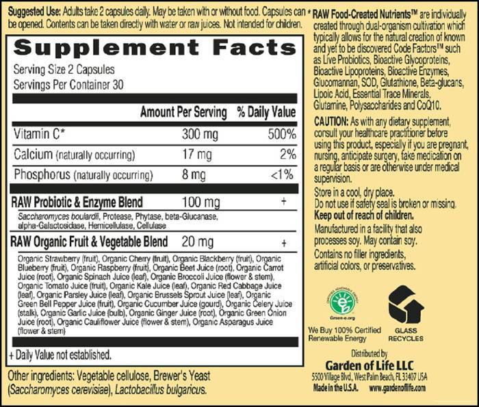 In addition to these qualities, RAW Vitamin C also provides a RAW combination of enzymes and probiotics, as well as a RAW combination of organic fruits and vegetables for additional nourishment.