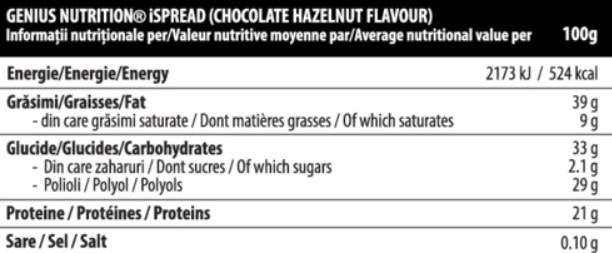 iSpread is a chocolate and hazelnut protein spread that is a healthier alternative to traditional spreads containing sugar and palm oil. iSpread has a great and authentic taste and is sugar-free. It is made with high-quality whey protein isolate obtained through natural filtration.