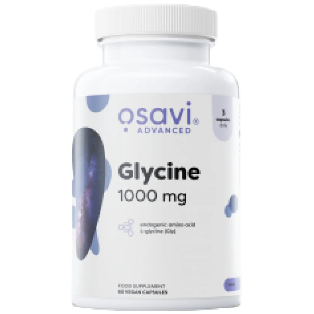 Glycine 1000 mg е хранителна добавка под формата на капсули, която подпомага синтеза на протеини и функционирането на нервната система.