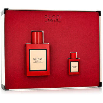 Gucci Bloom Ambrosia di Fiori – парфюмна вода EDP, представен в подаръчен комплект с флакон 50 ml и миниатюра 5 ml. Това е част от репутацията на Gucci за прецизност и стил, който предлага ясно изразен характер и практична опаковка за ежедневна употреба и за подарък.