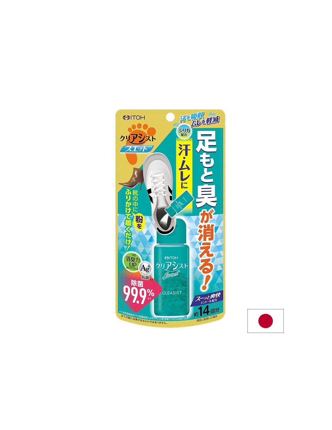 ITOH KAMPO Клиасист е иновативен дезодорант на прах, създаден в Япония, който ефективно неутрализира неприятните миризми, причинени от изпотяване и влага в обувките. Със своята патентована формула, Клиасист осигурява дълготрайна свежест и комфорт през целия ден.