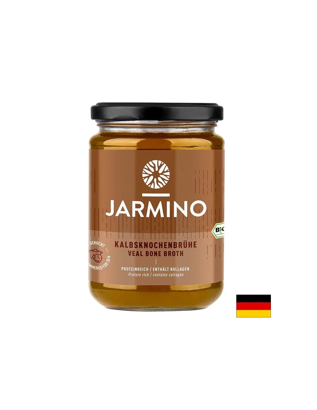 Bone broth from young calf BIO – (With spices, vegetables, tomato paste and rock salt), 350 ml