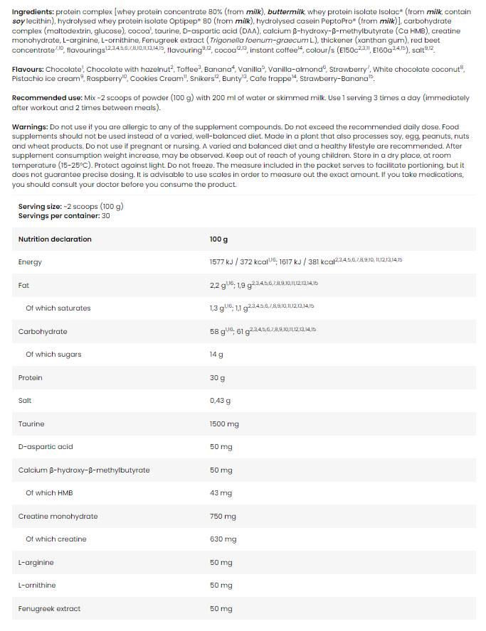 With each dose of this powerful anabolic formula, you will load your body with 48g of protein complex and 54g of carbohydrate complex, which will support recovery in the best possible way and predispose your muscles to growth!