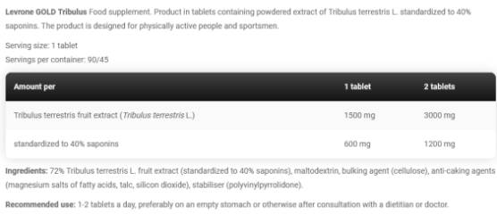 Gold Tribulus 1500 is a high-quality dietary supplement containing extract of the herb Tribulus Terrestris.