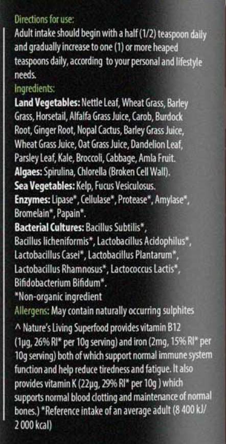 Nature's Living Superfood Organic - 20 grams