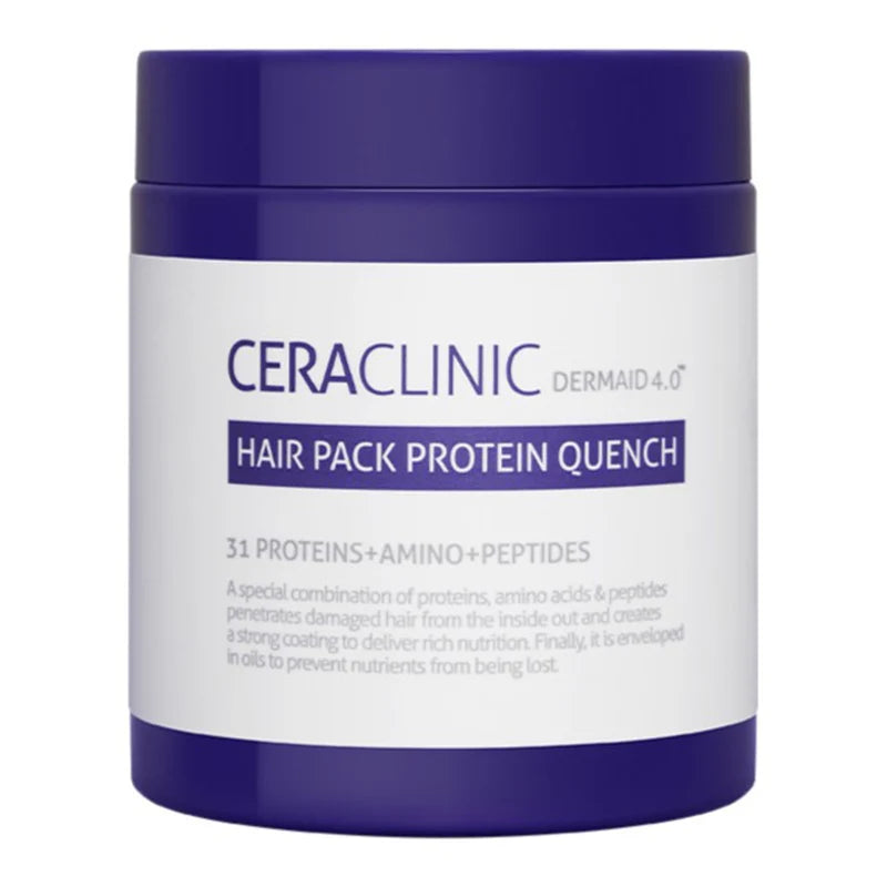 CERACLINIC вярва в K-beauty подход, който поставя нежната и балансирана грижа на първо място. Dermaid 4.0 Hair Pack Protein Quench е част от тази философия и използва внимателно подбрани съставки за поддържане на естествената структура на косата. Формулата съдържа хидролизирани протеини от царевица, пшеница и соя в синергия с 9 вида пептиди, за насърчаване на силата и еластичността на косъма без да натоварва косата. Продуктът е създаден да подкрепя ежедневната грижа и да бъде част от устойчивата грижа за цвета на боядисаната коса.