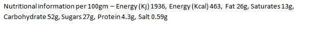 Ingredients: Whole grain oats, vegetable margarine, water, salt, emulsifier: polyglycerol esters of fatty acids, coloring: curcumin, cherry golden syrup, glucose-fructose syrup, citric acid. May contain traces of nuts, milk and soy.