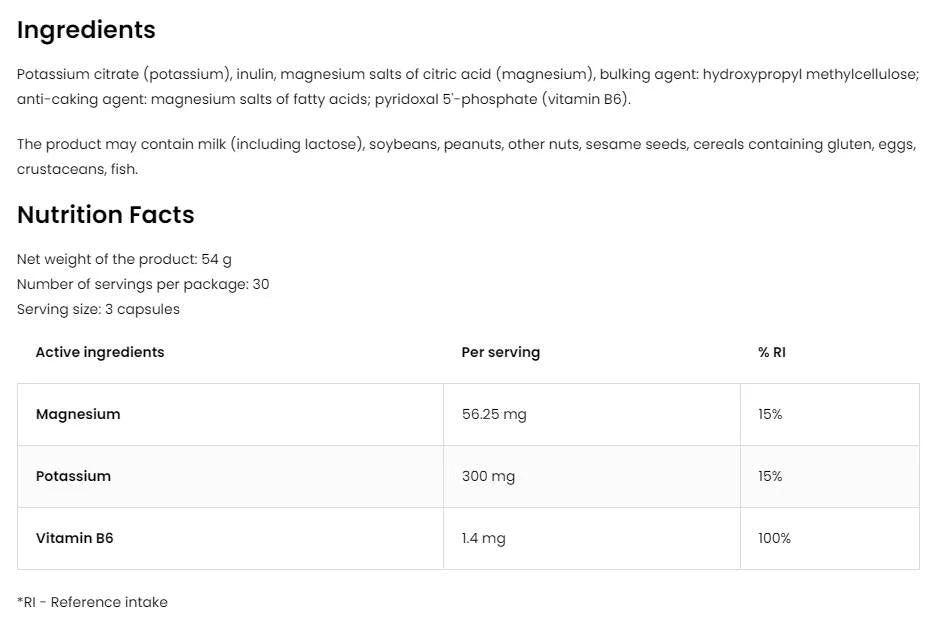 Scientific studies show that magnesium plays an important role in over 300 biochemical reactions in the body, including energy production and protein synthesis. Potassium is essential for maintaining normal cell and nervous system function. Sufficient levels of vitamin B6 help reduce symptoms of depression and anxiety, and also support the normal function of the immune system.