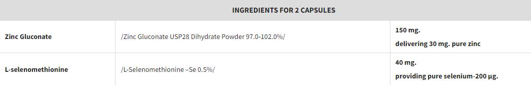 L-СЕЛЕНМЕТИОНИН 100µg – ЦИНК ГЛЮКОНАТ 15mg е хранителна добавка, и благодарение на естествения си и абсолютно безвреден състав от натурални продукти е чудесно средство за цялостна грижа за имунитета, за превенция срещу грипни състояния които са изключително чести, особено през есенно-зимния сезон. Чрез редовният прием на Селен и Цинк се увеличава броя на клетките-пазители /Макрофагите/, който са изключително важни за добрия имунитет и за адекватното неутрализиране на вирусите в рисковите зони за развитие на инфекция (устата, носа и гърлото), предотвратява се и навлизането на различни патогени в организма, както и се активират възстановителните и регенеративни способности на тялото