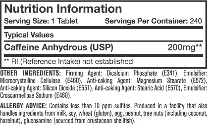 CAFFEINE Premium 200mg / 200tabs. + 40 FREE tabs