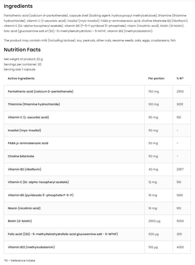 Methyl B-Complex is a dietary supplement containing a group of important B-complex vitamins that play a key role in maintaining optimal health. Thanks to its unique formula, the product helps with energy metabolism and the functioning of the nervous system. B vitamins are known for their ability to improve mood and reduce fatigue, making them an ideal choice for active people and those who want to cope with stress.