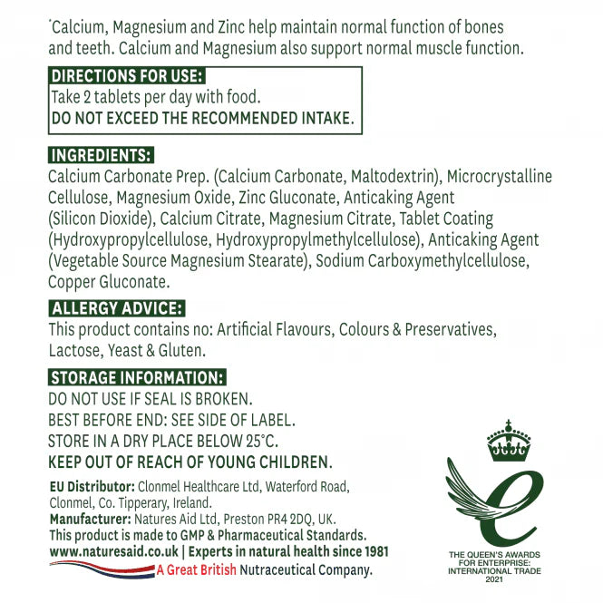 Calcium, Magnesium and Zinc (Calcium, Magnesium + Zinc) Natures Aid: