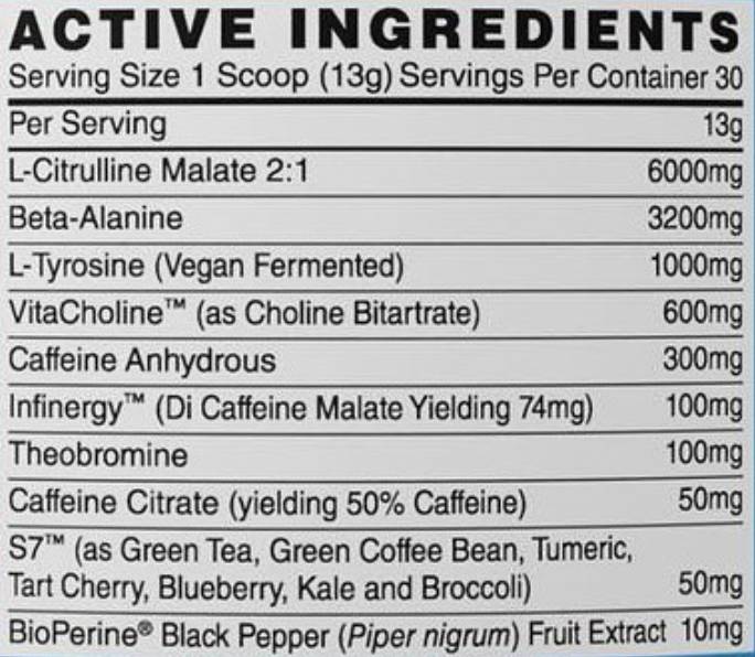 Menace Do The Business съдържа 6 g цитрулин и защитената с търговска марка S7® формула за повишаване на азотния оксид, която подпомага кръвообращението и дълготрайните помпи. Съставът включва TRI-Caffeine за мощно и продължително ниво на енергия, VitaCholine® в комбинация с L-тирозин за подобрено настроение и фокус, а бета-аланинът допринася за по-издръжливи тренировки.