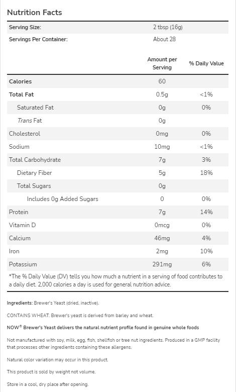 NOW® Brewer's Yeast delivers the natural nutritional profile found in real whole foods.