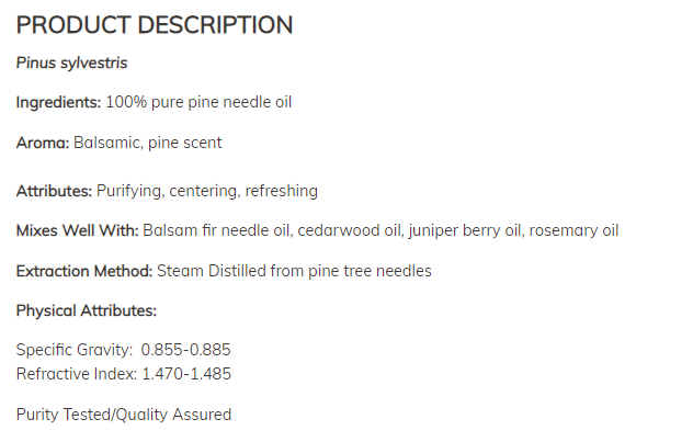 Due to its aroma, pine essential oil is distinguished by its uplifting yet cleansing scent. Because of this, pine essential oil can work as a room fragrance in a diffuser, as well as in cleaning solutions.