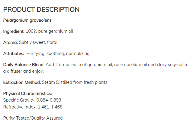 - Ingredients: 100% pure geranium oil