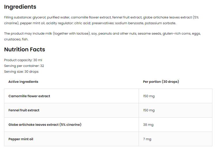 Digestive drops are specially formulated to support the health of your digestive system. They contain active ingredients that help improve the digestive process, reduce the feeling of bloating and discomfort in the stomach, and facilitate the absorption of nutrients. Through their formula, these drops not only improve bowel function, but also stimulate the natural appetite, which is important for maintaining a healthy lifestyle.