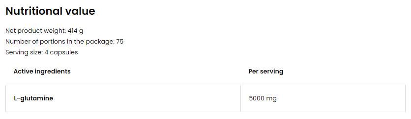 Directions for use: take ( 1 dose = 4 capsules ) of OstroVit Glutamine 1250 once after training, and once before bedtime.