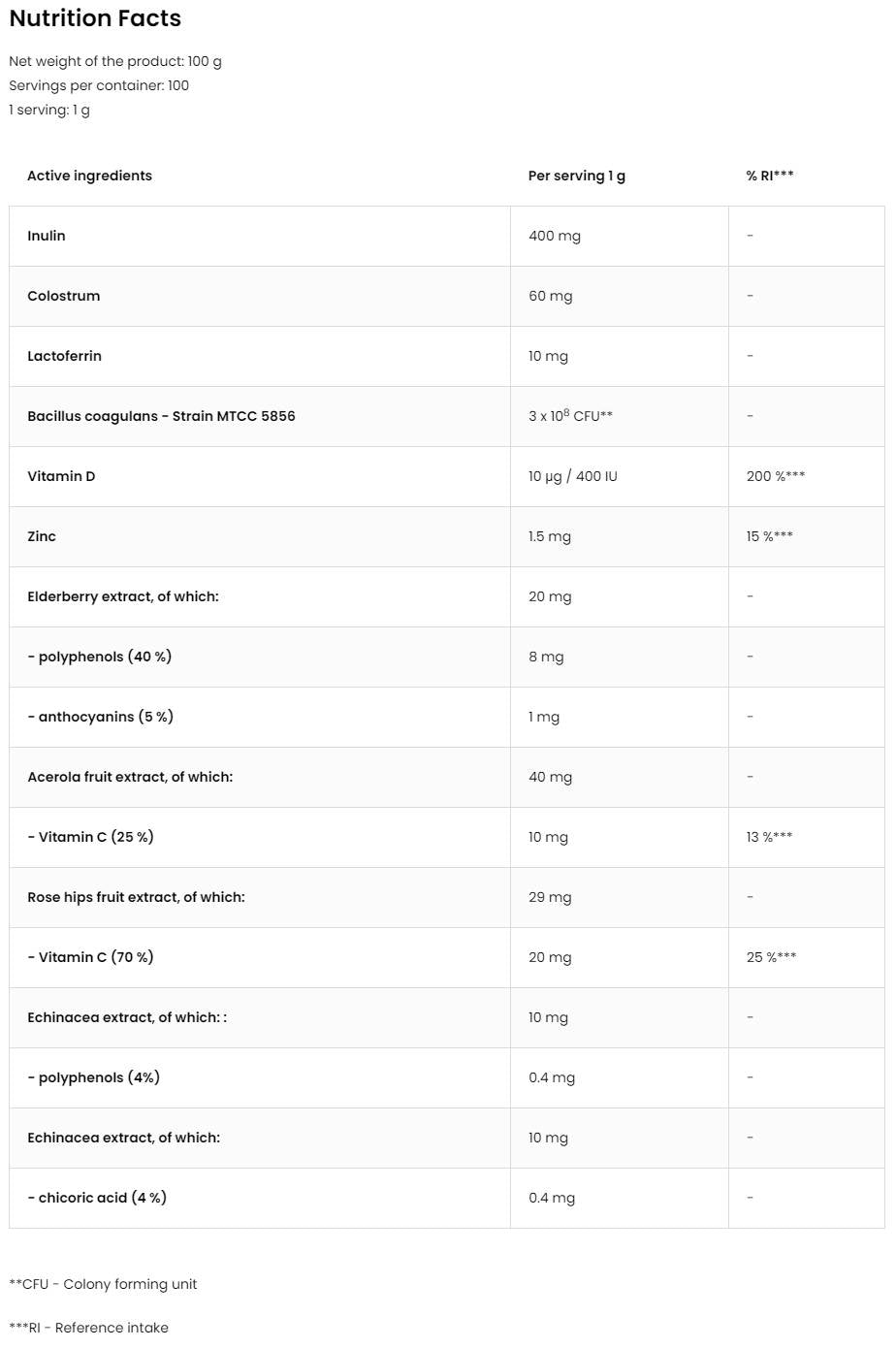 Immune Aid Powder Kids is specially formulated to provide the necessary support for your child's immune system. With its rich composition of vitamins and minerals, this product helps to increase energy and overall well-being. Studies show that regular intake of ingredients that strengthen the immune system can reduce the frequency of colds and other viral illnesses in children.