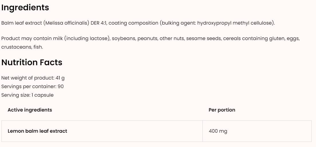 Lemon balm 400 mg | Vege - 90 capsules