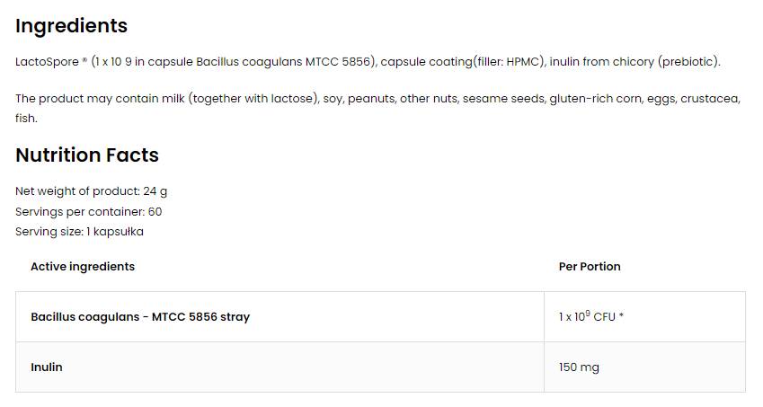 Lactobacillus sporogenes (LactoSpore®) is a unique probiotic that is extremely resistant to adverse conditions, which guarantees its effectiveness. It has been found that regular intake of probiotics can help reduce stress and anxiety, suppress inflammatory processes and even maintain skin health. Scientific studies show that LactoSpore® can also help people with lactose intolerance by improving the absorption of lactose in the body.