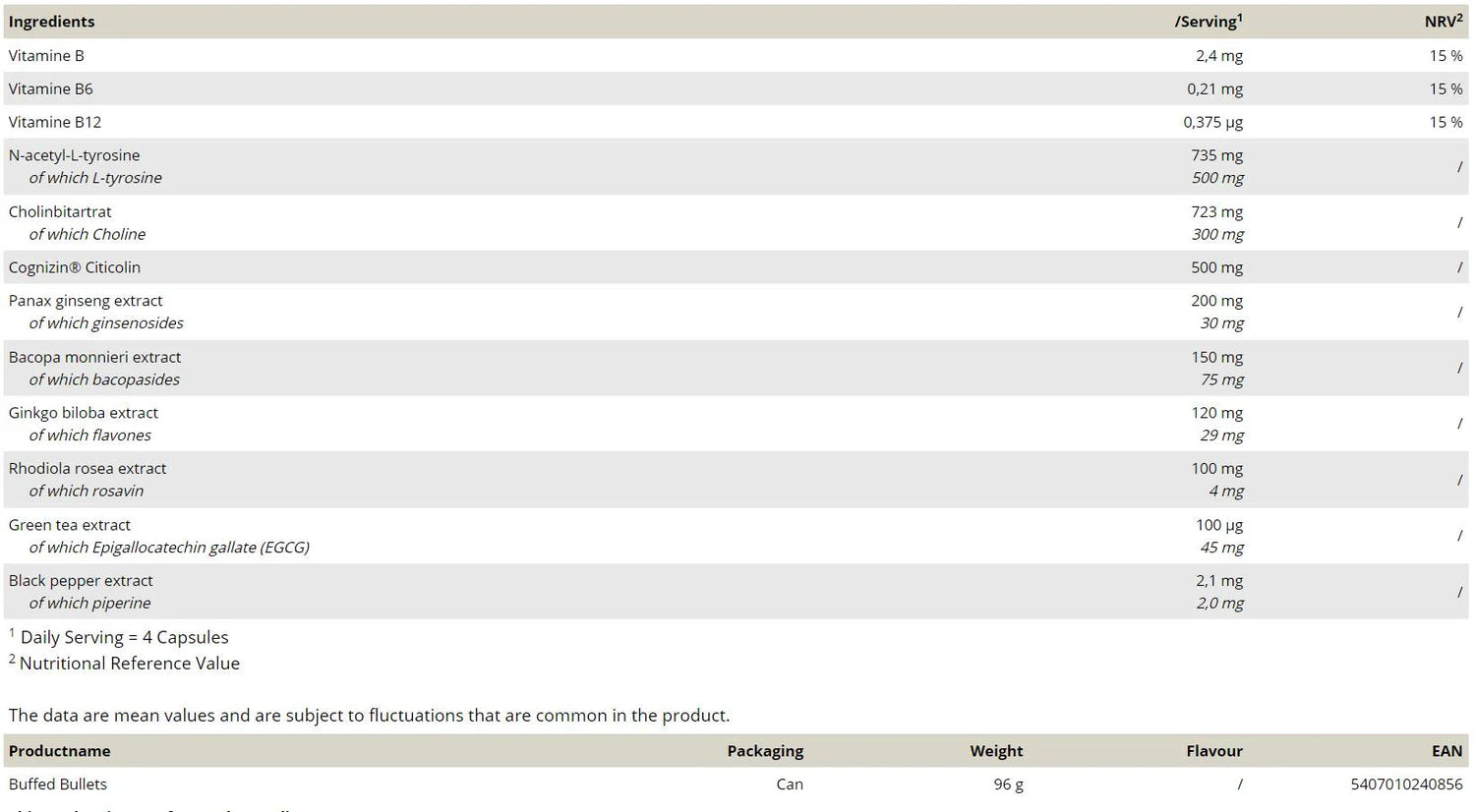 Buffed Bullets | with Adaptogens and Nootropics 120 capsules