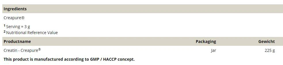 Creapure® is manufactured in Germany in accordance with the manufacturing guidelines of the pharmaceutical and food industries and is therefore subject to the strictest quality control. This results in a high-quality product with a consistently high degree of purity.