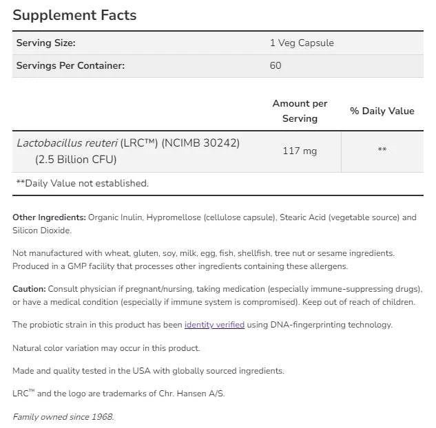 Clinical Heart Health Probiotic | Lactobacillus reuteri LRC™ 2.5 Billion - 60 capsules