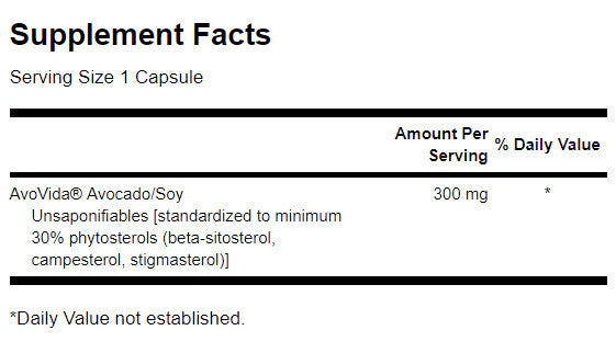 For many people, avocado is just a tasty addition to a salad. But if you know how many active phytosterols it contains, you will quickly make it part of your daily health program. Avocado, in the same way as soy, contains valuable substances for maintaining good joint activity. Now, with AvoVida, you can benefit from all the beneficial ingredients that nature has put into avocado and soy. AvoVida provides the phytosterols beta-sitosterol, campesterol and sigmasterol, as well as many others. It is the perfect addition to any joint health program, and an excellent companion to glucosamine and MSM.