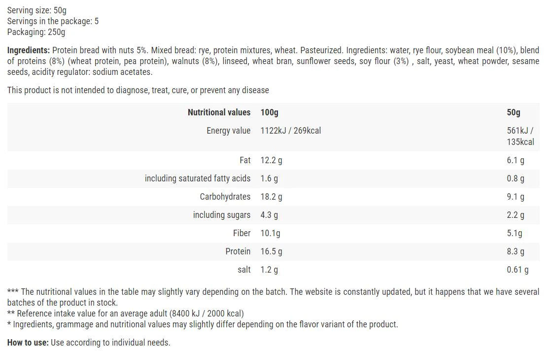 Protein Bread / Walnut - 250 grams