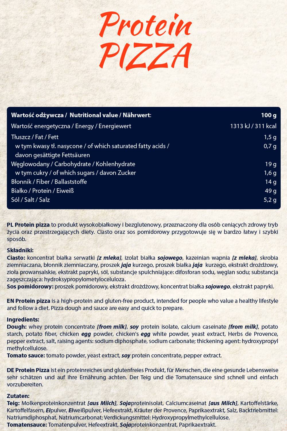 Protein Pizza from our number one liquid supplement brand is an excellent choice for anyone who wants to enjoy delicious food without compromise. With its high protein content, this product is extremely useful for maintaining and building muscle mass, while offering balanced nutrition. The gluten-free formula also makes it suitable for people suffering from gluten intolerance.