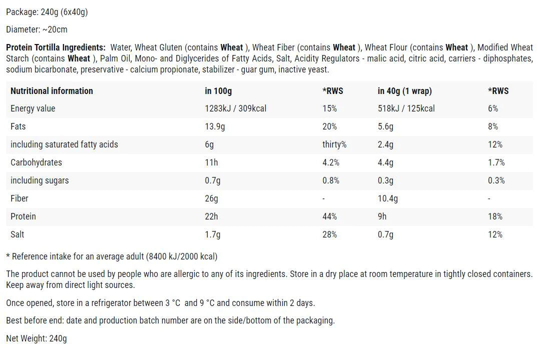Protein Tortilla | Low-Carb High-Protein ~ Keto Friendly Wraps - 6 x 40 ( 240 ) grams